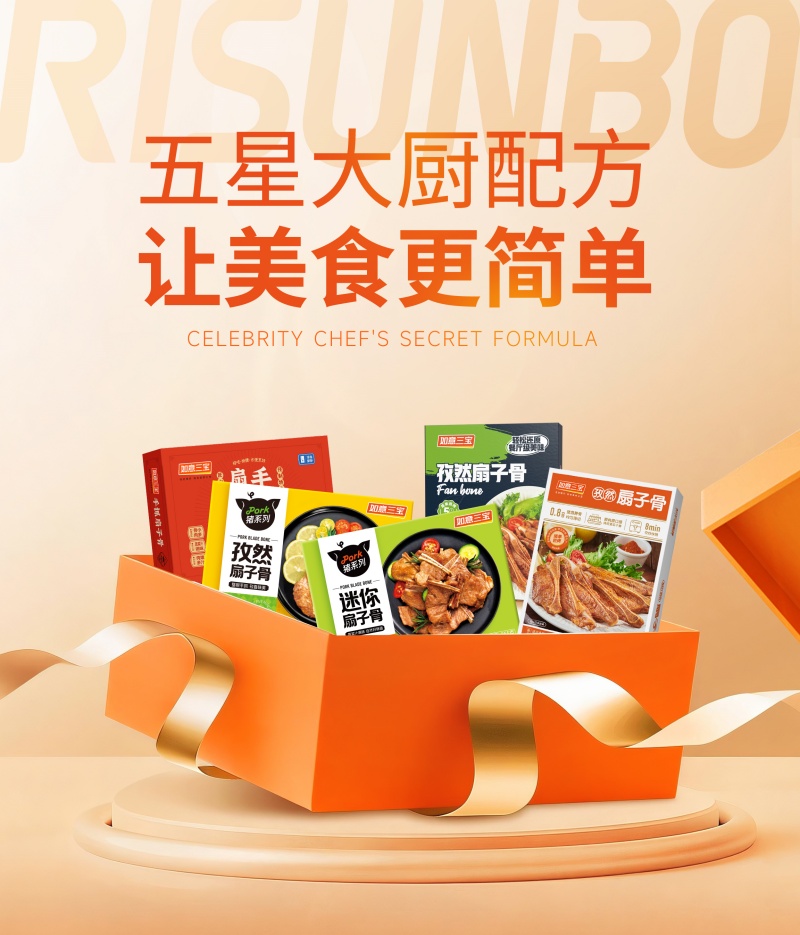 品类破局的关键,在于产品创新与严苛的品质把控。如意三宝推出的手抓扇子骨产品一经上市便迅速引爆市场。该产品严选猪扇骨中10%-20%的黄金部位,采用新鲜蔬菜打汁腌制工艺,在有效去除腥味的同时保留食材本味,搭配低温真空滚揉工艺让肉质更鲜嫩多汁。这款产品,成功打开了消费市场,更一举奠定了如意三宝在扇子骨品类的优势。